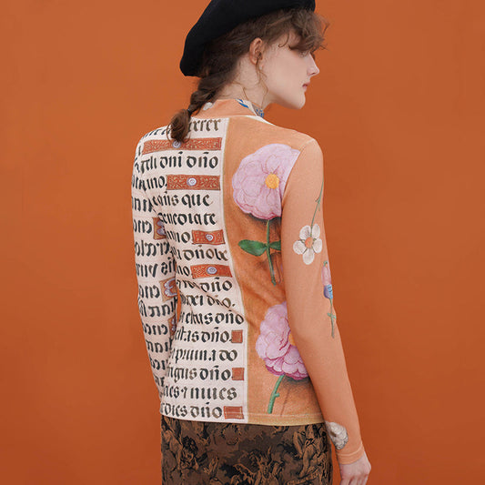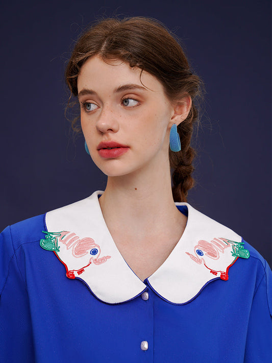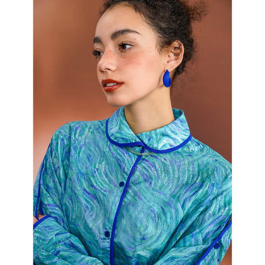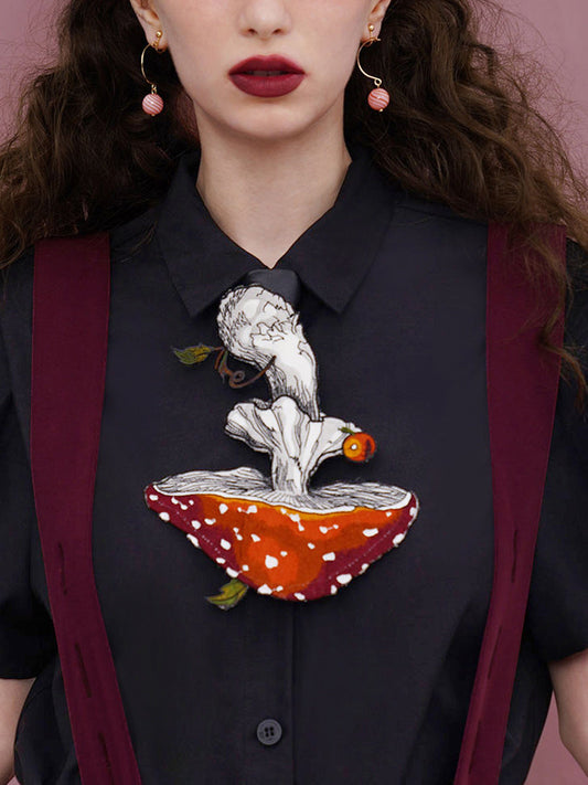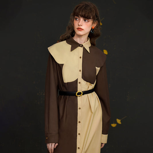 Dark Brown Leaf Blouse and Long Shirt Dress