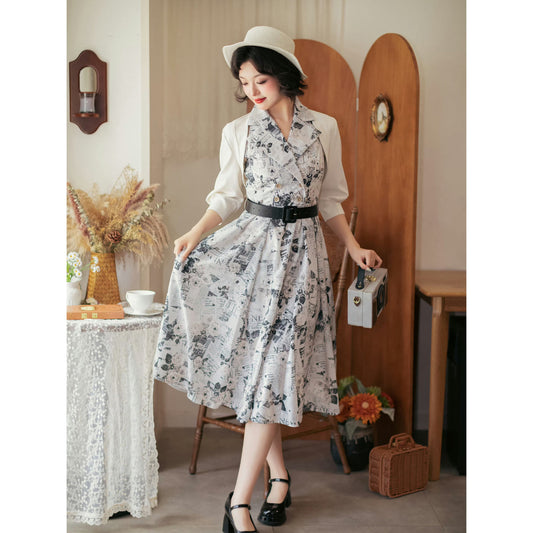 【日本国内発送、1週間以内にお届け】Western newspaper & white rose classical dress