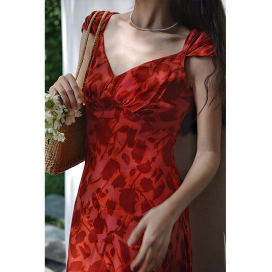short-sleeved summer three-layer gauze dress