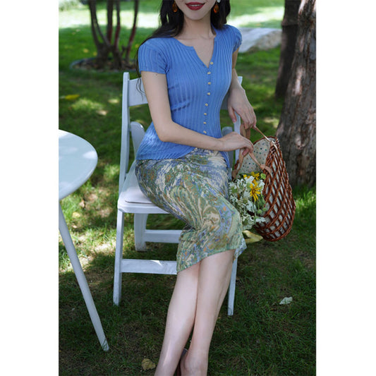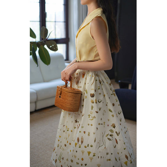 Watercolor floral crowd tops and long skirts