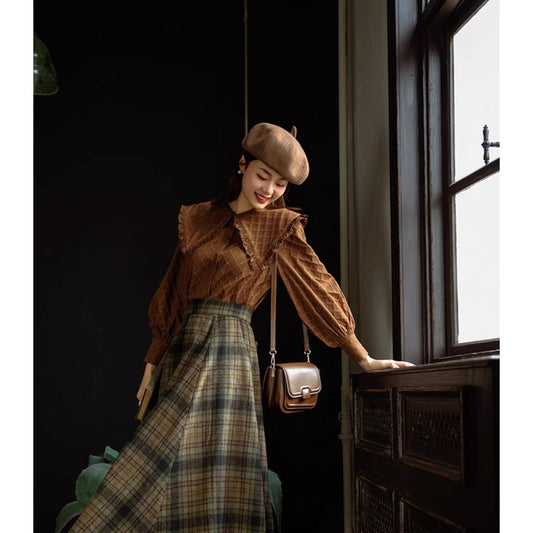 Sold outVendor:Miss EggBritish plaid retro flared skirt