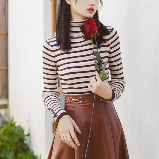 Sold outVendor:Miss Eggdark brown striped turtleneck knit