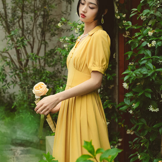 Sold outVendor:Miss EggPale yellow lady's retro dress