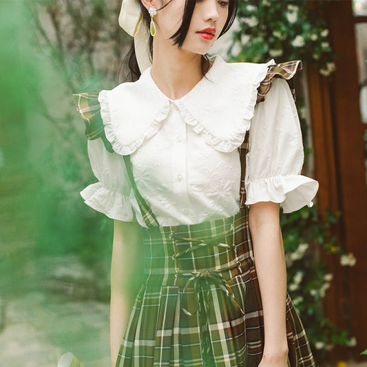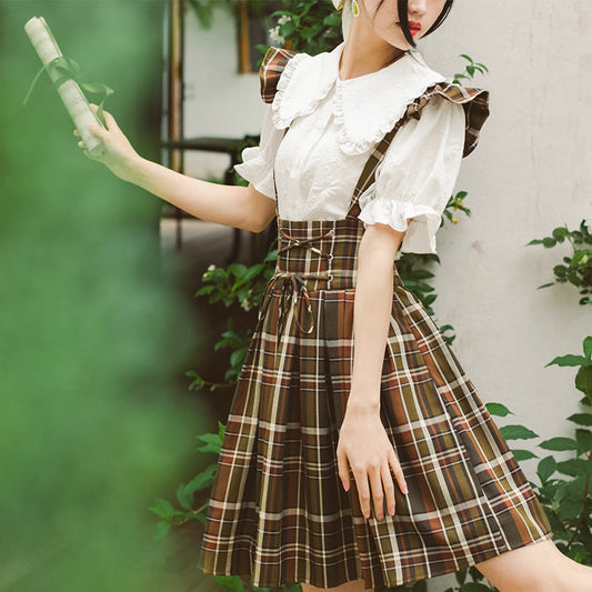 Sold outVendor:Miss EggEnglish plaid salopette skirt