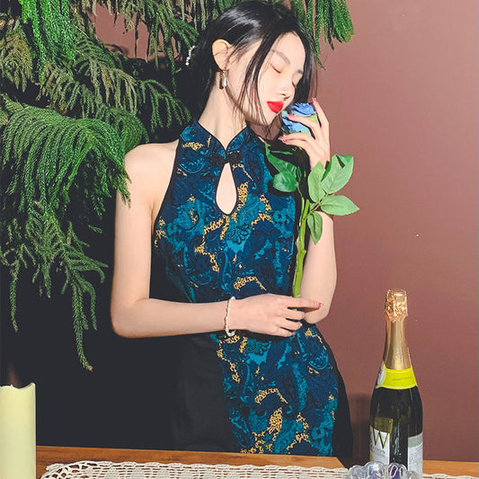 Sold outVendor:Miss Eggblue green painting cheongsam dress