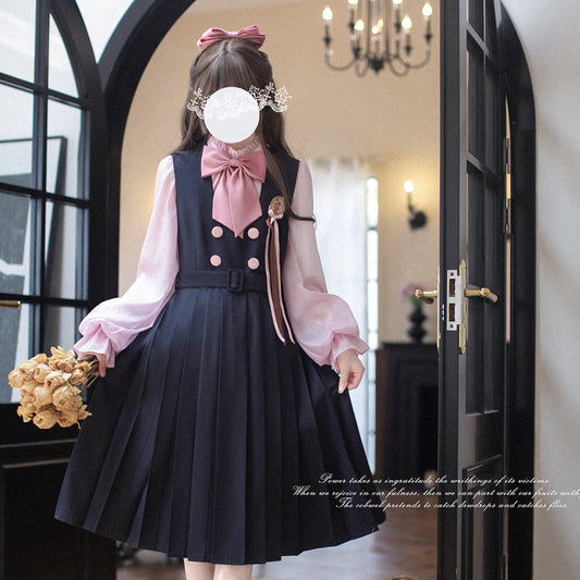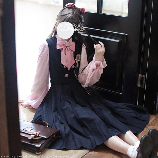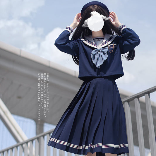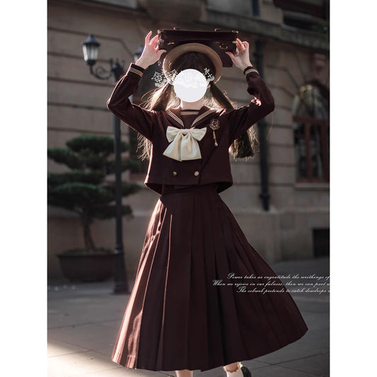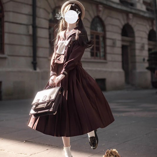 Cherry Blossom Lady's Literary Sailor Blouse and Pleated Skirt