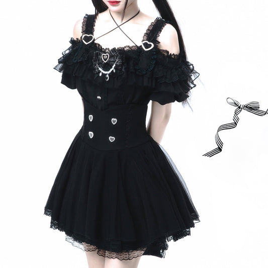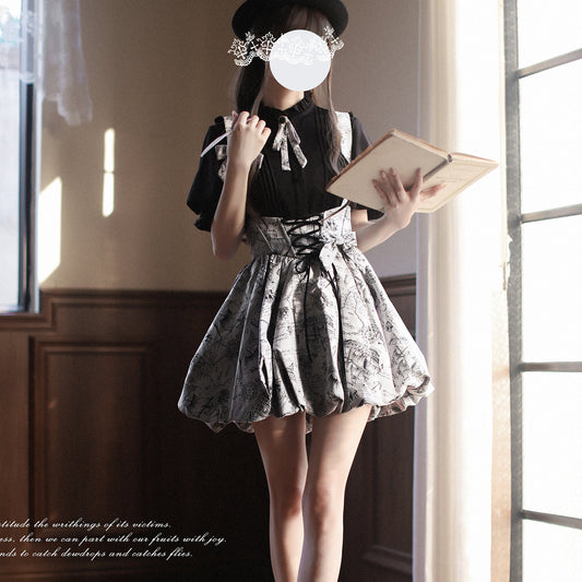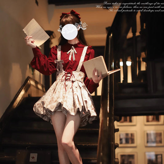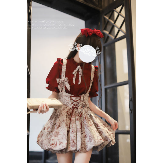 Crimson lady gothic ribbon blouse & ruffled skirt