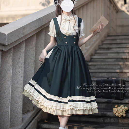 Ash Green Lady's Literary Sailor Blouse and Pleated Skirt