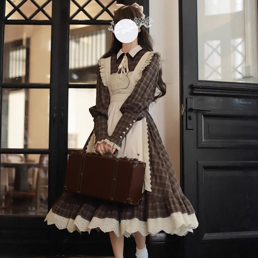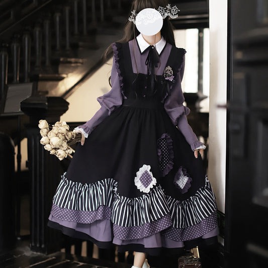 Black Ink Plaid Long Jumper Skirt and Blouse