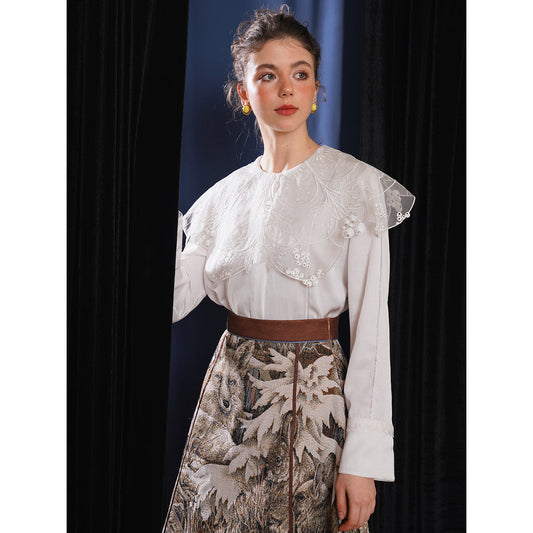 [Shipping within Japan, delivered within 1 week] Paris Girl Floral Embroidery Blouse
