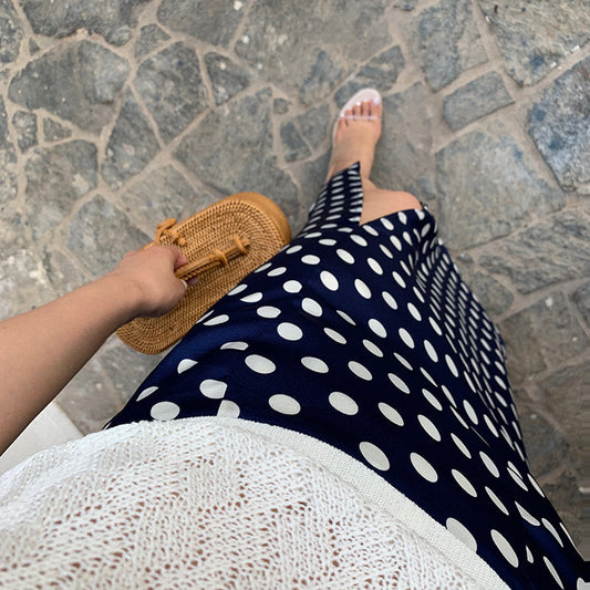 Sold outVendor:Ching's closetNavy blue polka dot asymmetric skirt