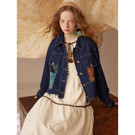 Sold outVendor:SomethingRed poppy and daisy denim jacket
