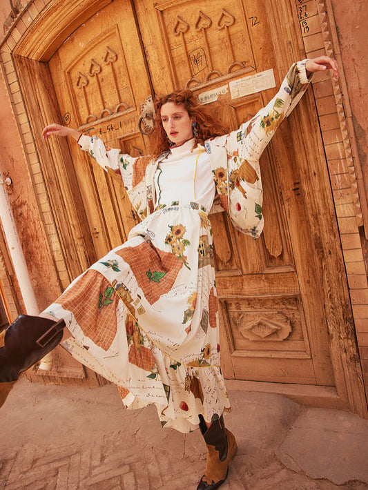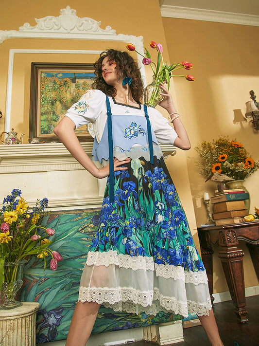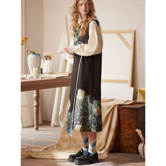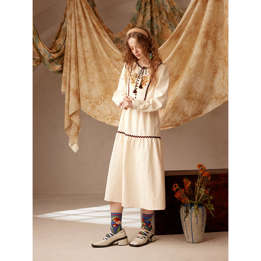 Vase sunflower embroidery retro dress