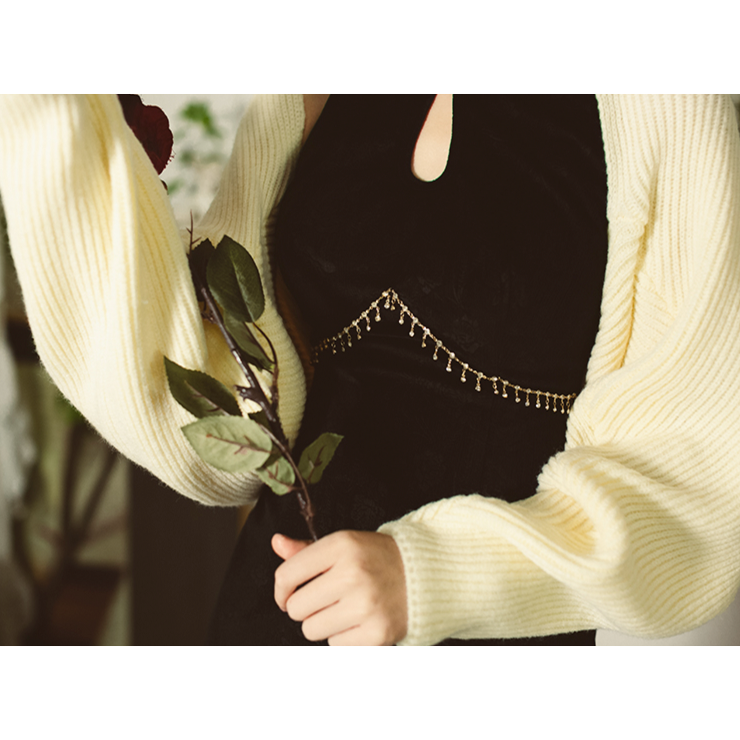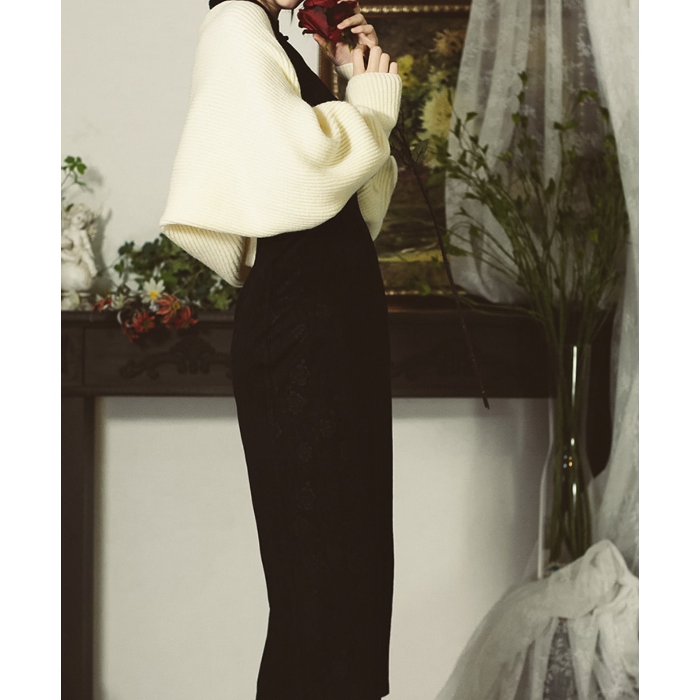 black rose velvet dress & cardigan