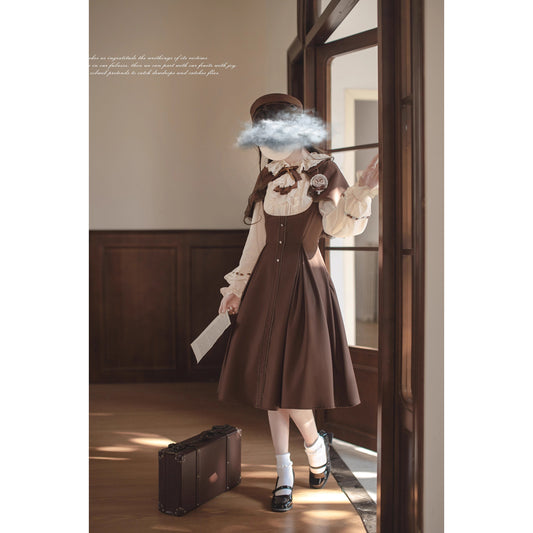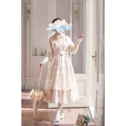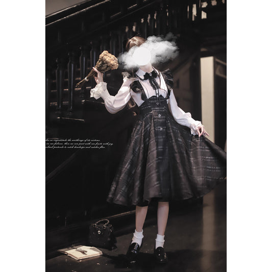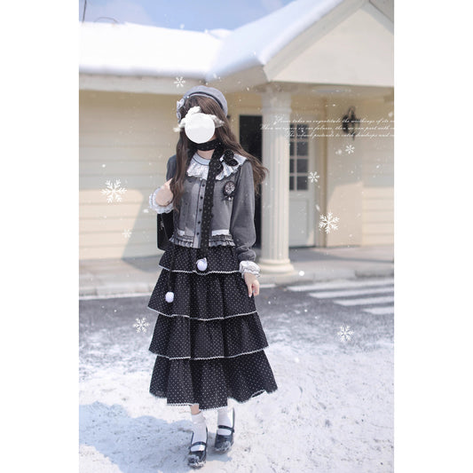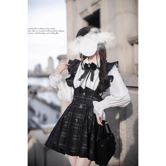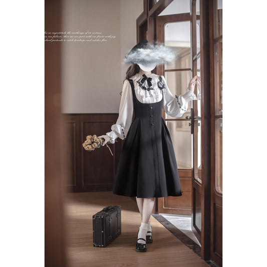 Sonata-playing embroidered jumper skirt and frill ribbon blouse