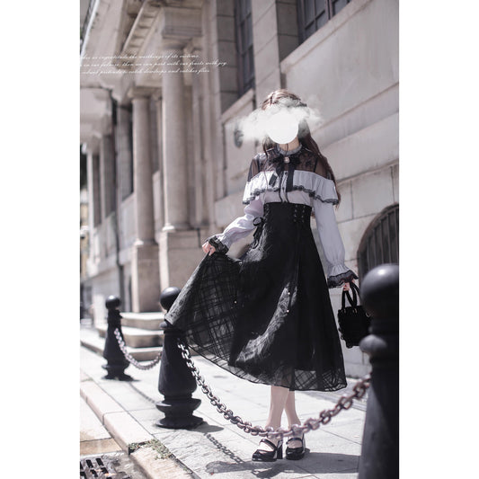 Crimson lady gothic ribbon blouse & ruffled skirt