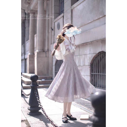 Pale purple lady's ruffle jumper skirt and blouse