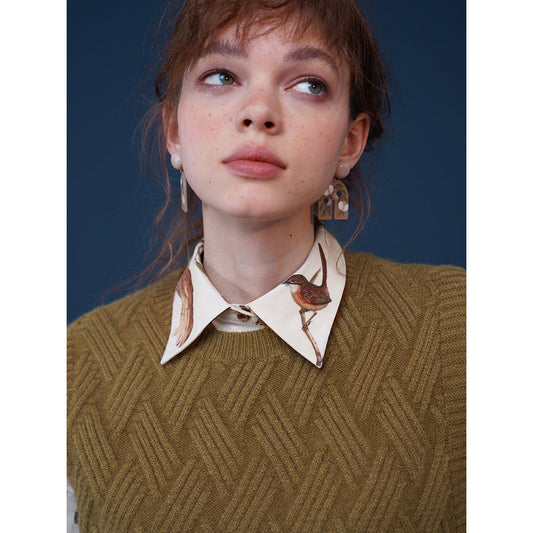 Fairy tale two rabbits color button diamond check seven sleeve shirt