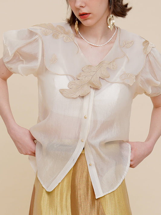 Embroidered blouse with leaves and nuts