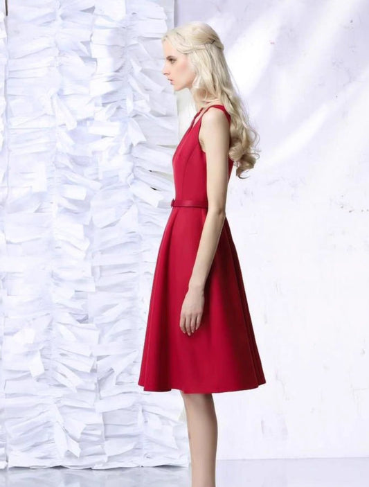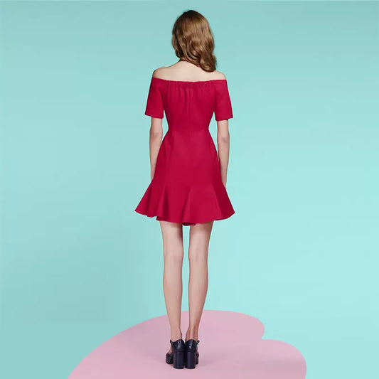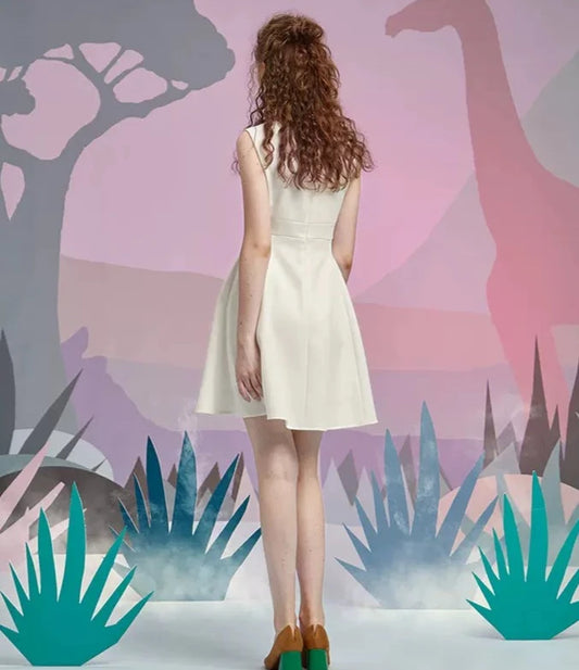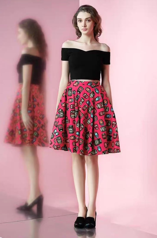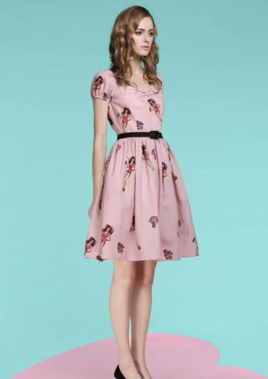 Short V-neck Puff Sleeves Retro Print Tattoo Dress