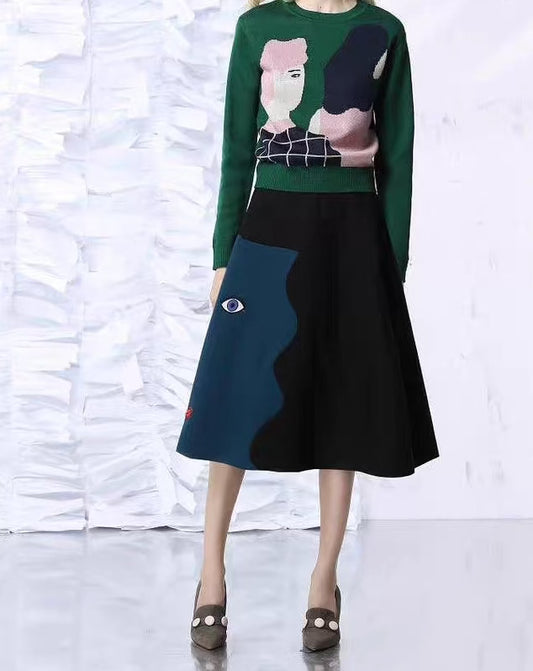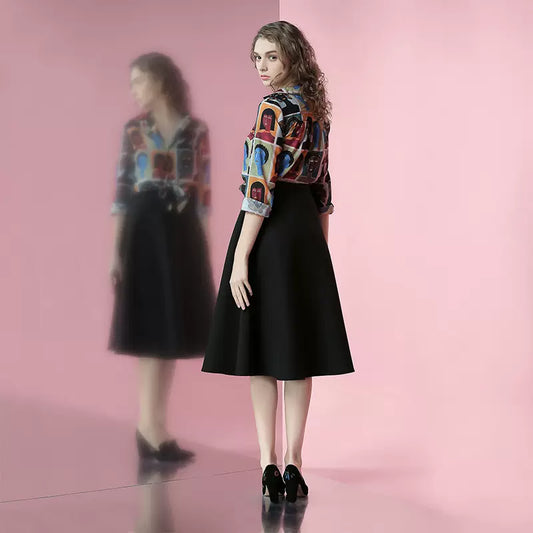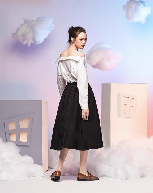 Fairy Tale Two Rabbits Black Cape Collar Long Sleeve Shirt
