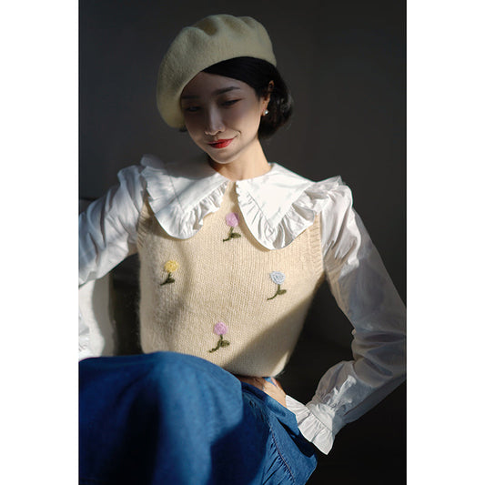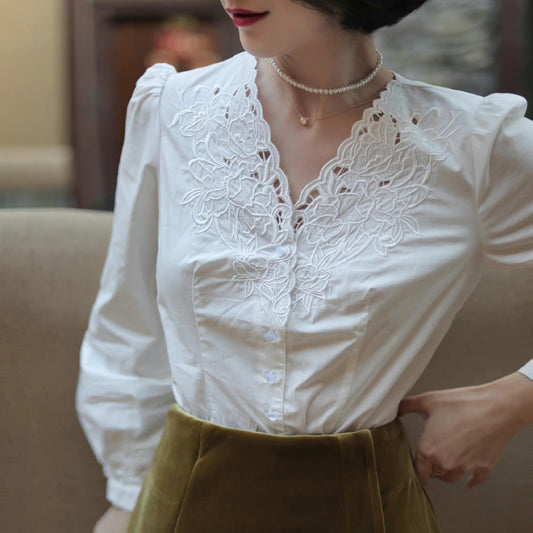 Petal Embroidered Retro Blouse