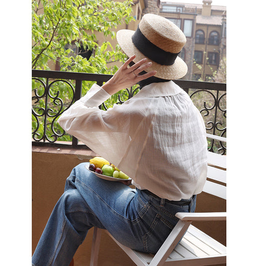 Sold outVendor:Ching's closetLady White Linen Blouse