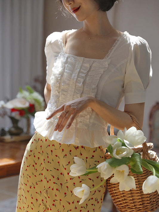 white lady vintage frill blouse