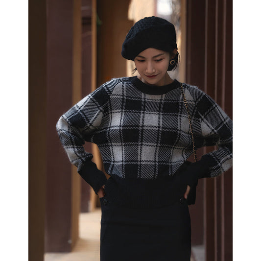 black white plaid retro sweater and cardigan
