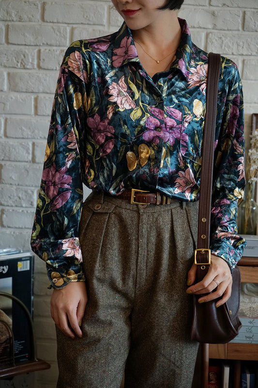Sold outVendor:Ching's closetfloral drawing vintage shirt
