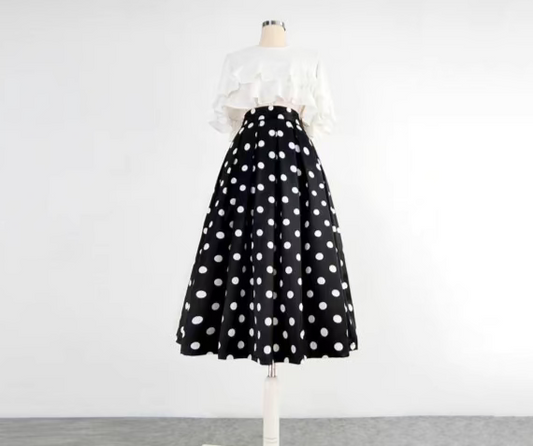 Sold outVendor:Ziweiyipolka-dot printed high-waist skirt
