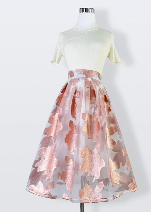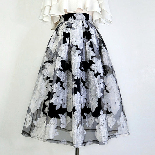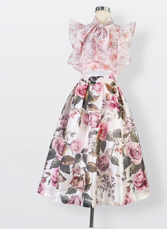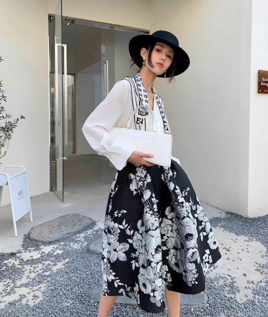 Sold outVendor:ZiweiyiCrimson Rose Pattern Hepburn Skirt