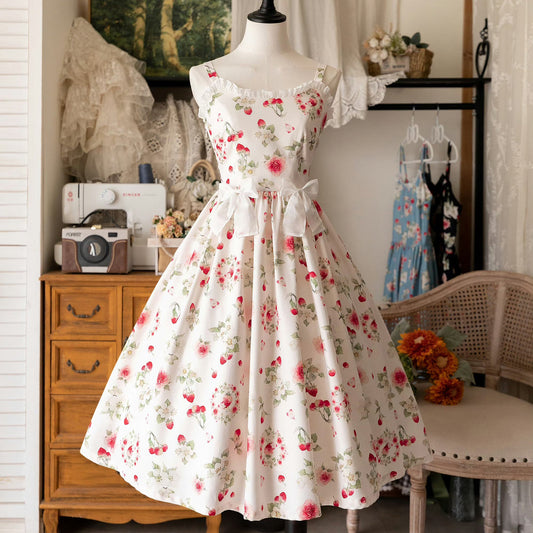 Rose and strawberry watercolor strap dress