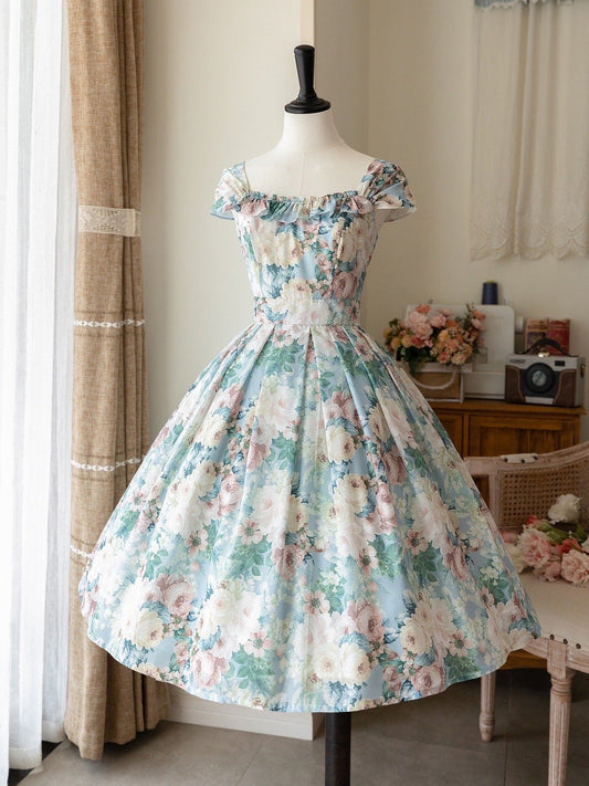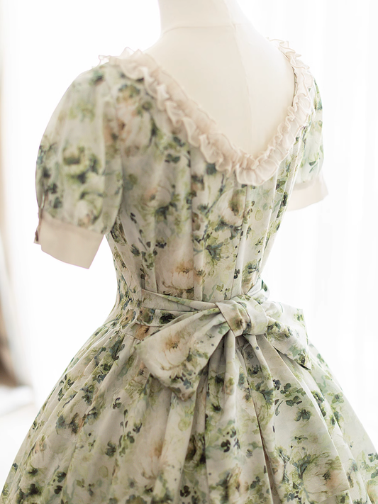 Verdant flower watercolor classical dress
