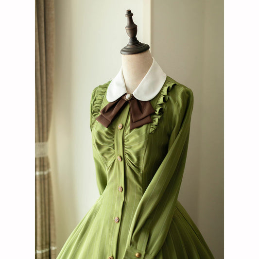Young green lady's vertical striped classical dress