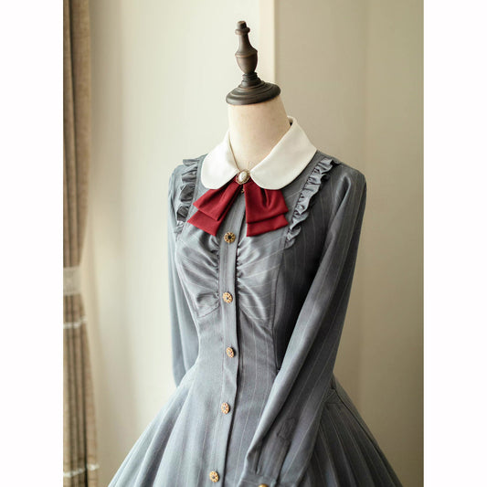 Vertical stripes classical dress of gray indigo lady