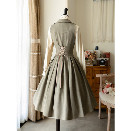 Princess knight jumper skirt and high neck blouse (gray brown)
