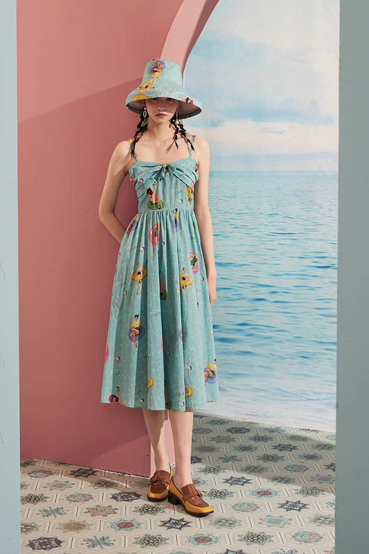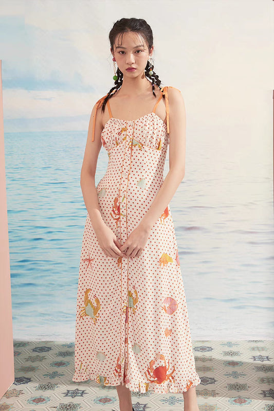 suspender polka dot crab hand-painted beach dress