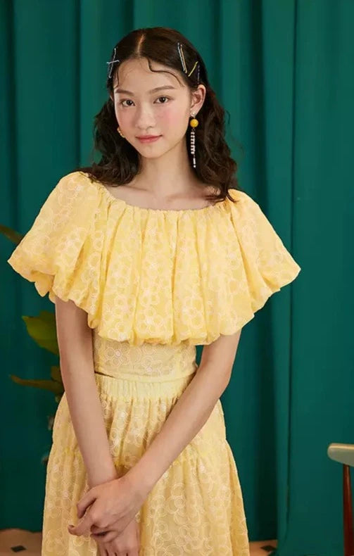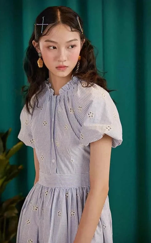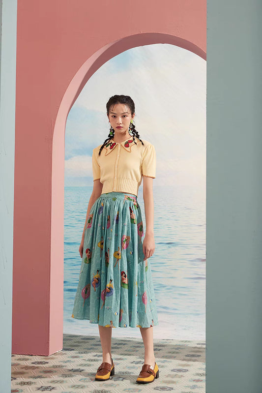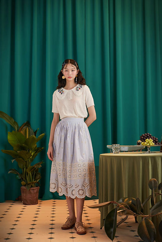 fresh hollow embroidered literary skirt