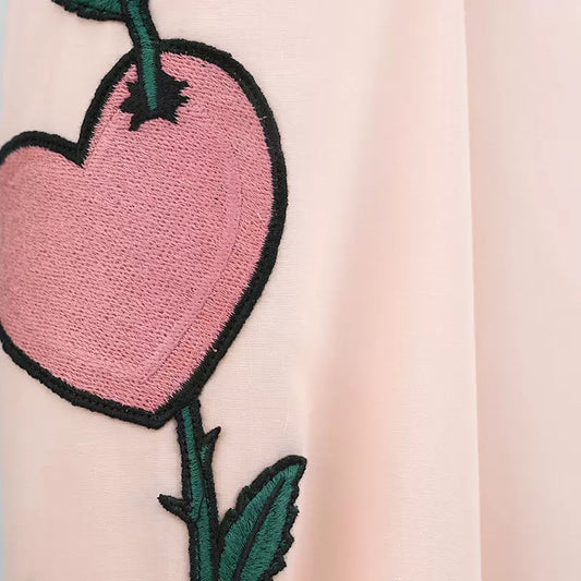 ove rose embroidered pink long-sleeved shirt