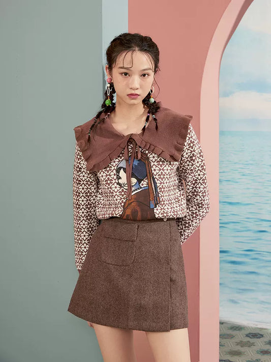 retro patch pocket decoration tweed skirt