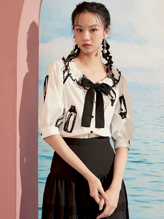 bow round collar white shirt