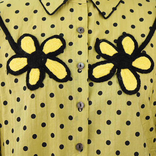 polka dot printed daisy patch embroidered straight shirt