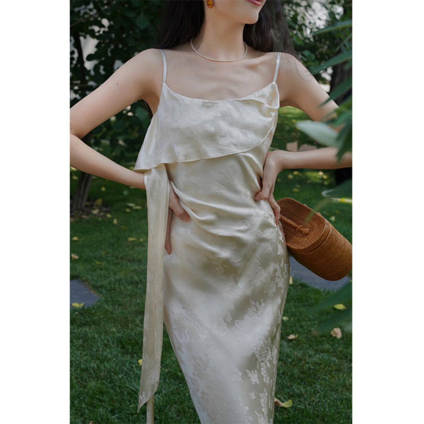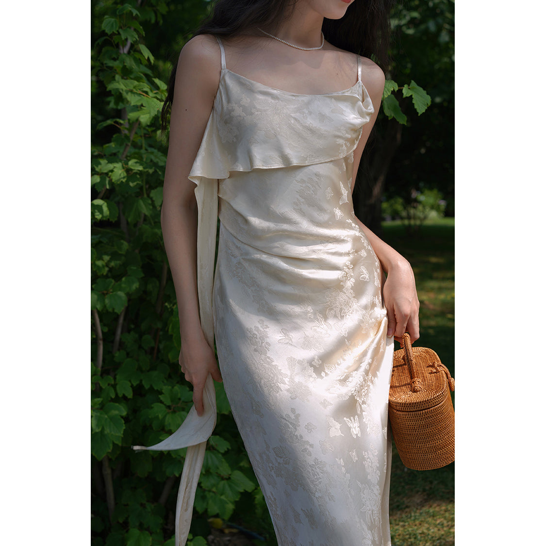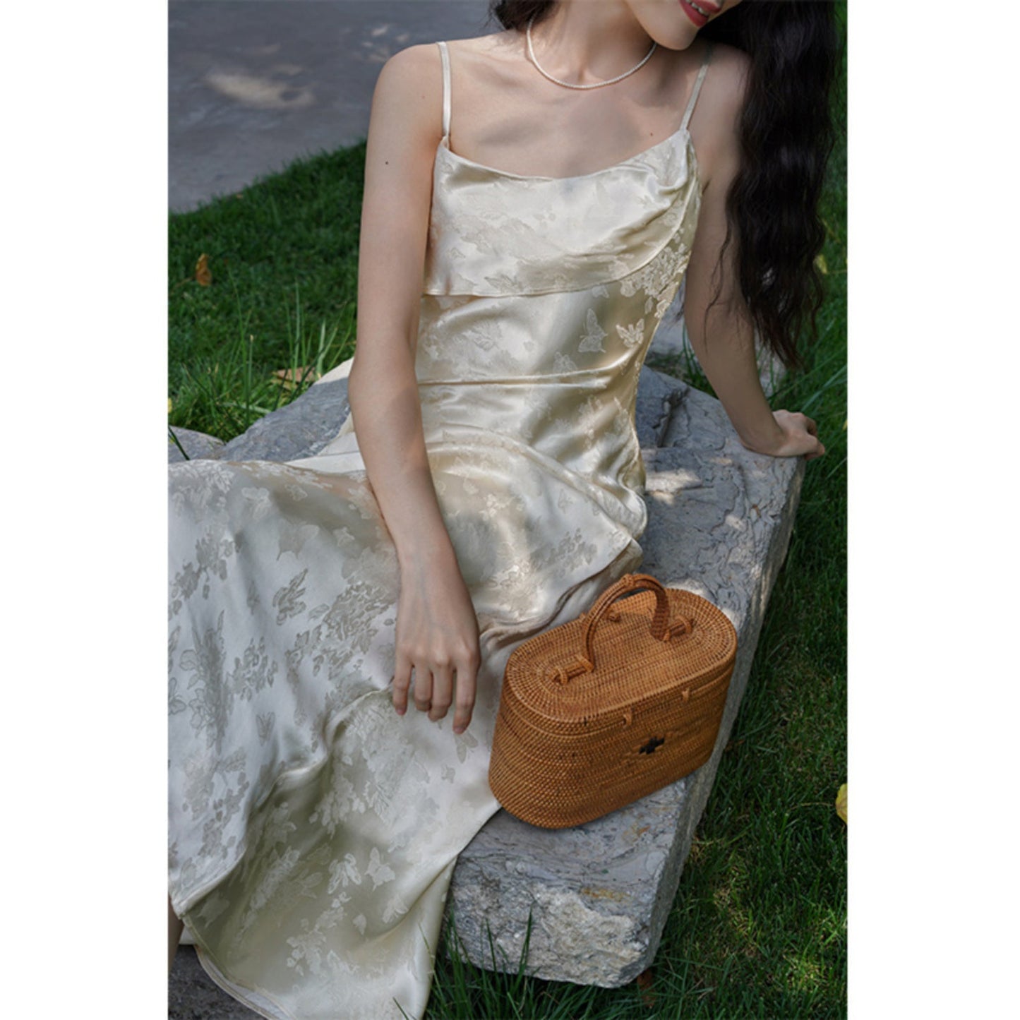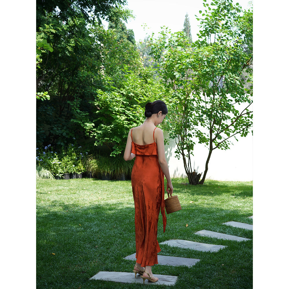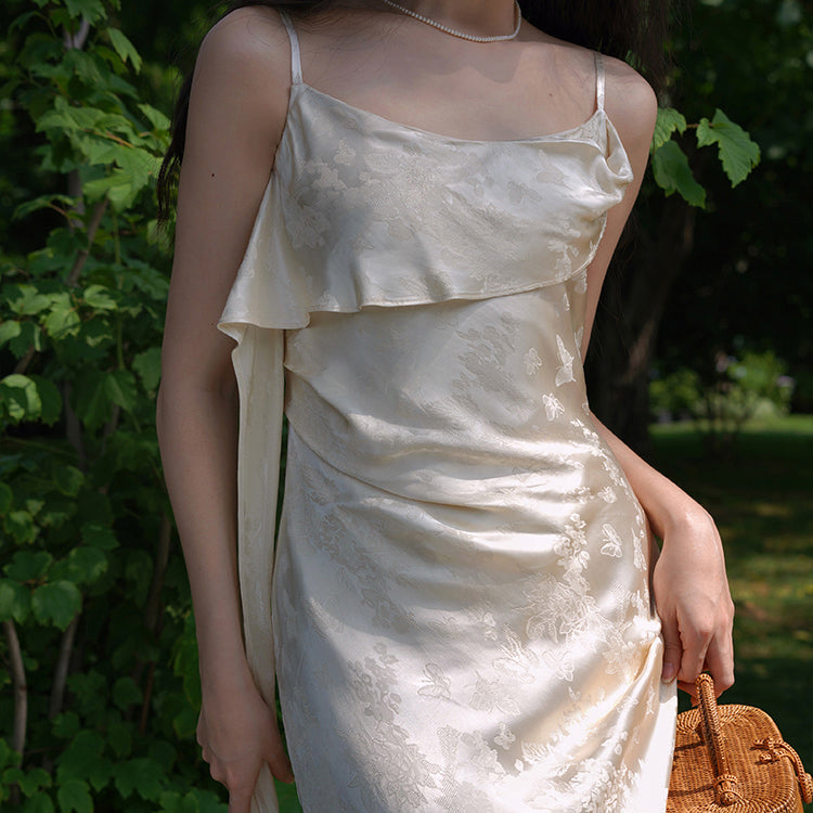 Flower and butterfly flower and bird painting satin jacquard dress