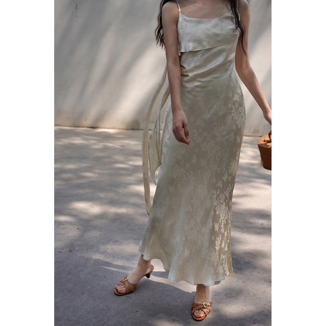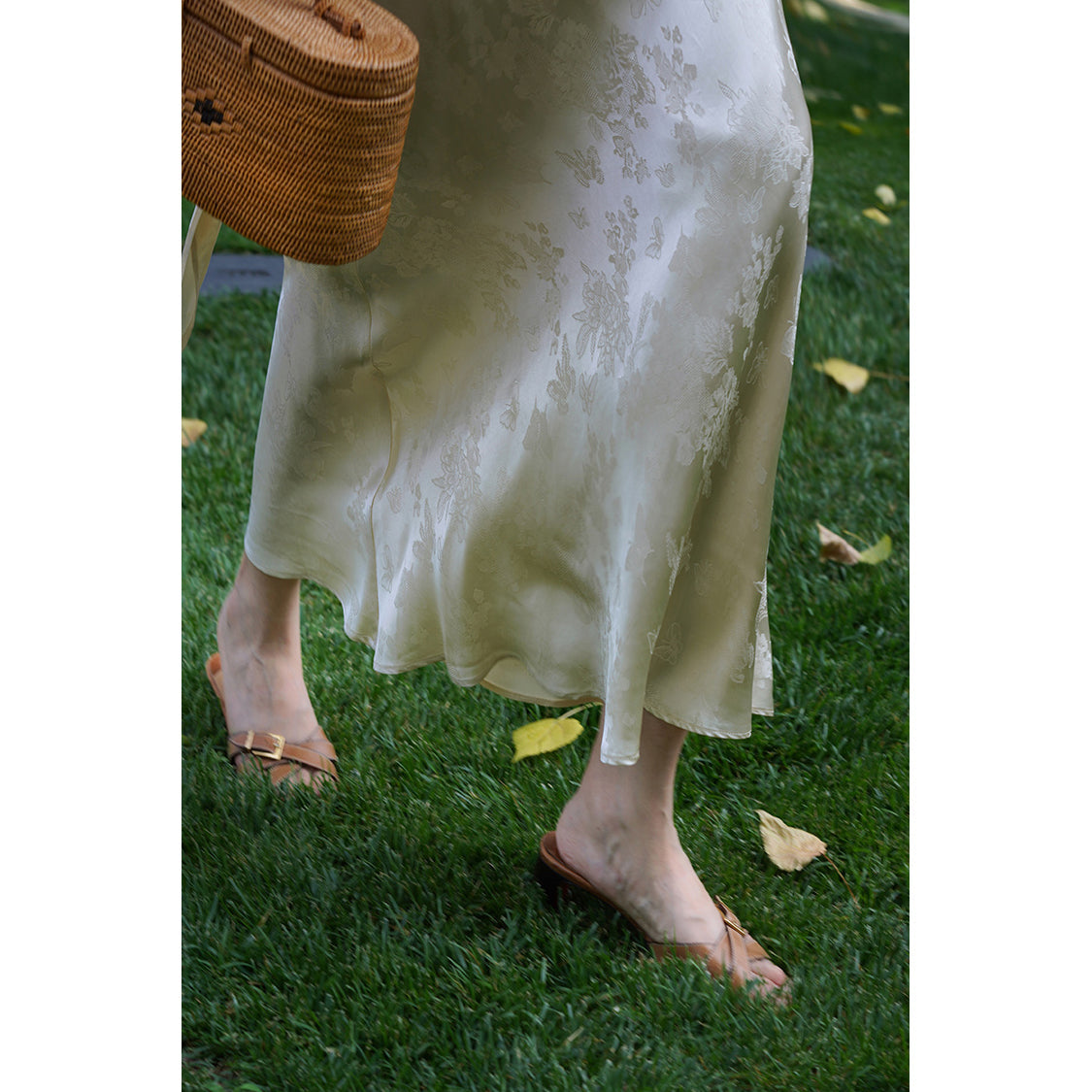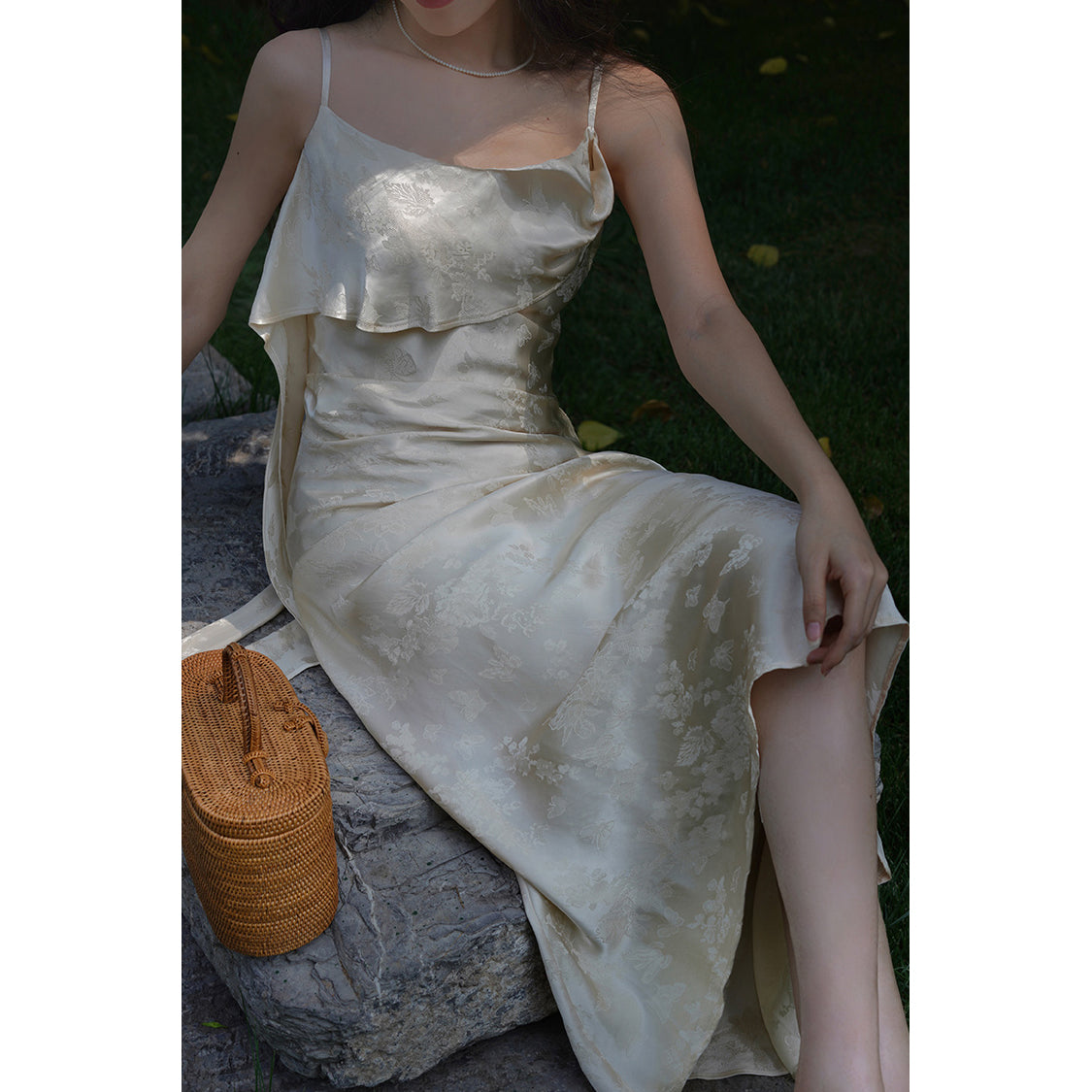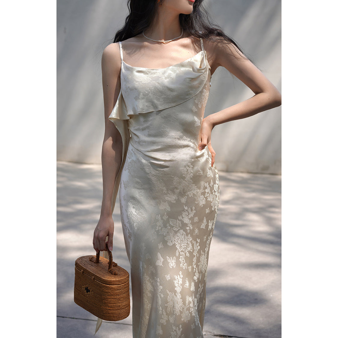 Flower and butterfly flower and bird painting satin jacquard dress
