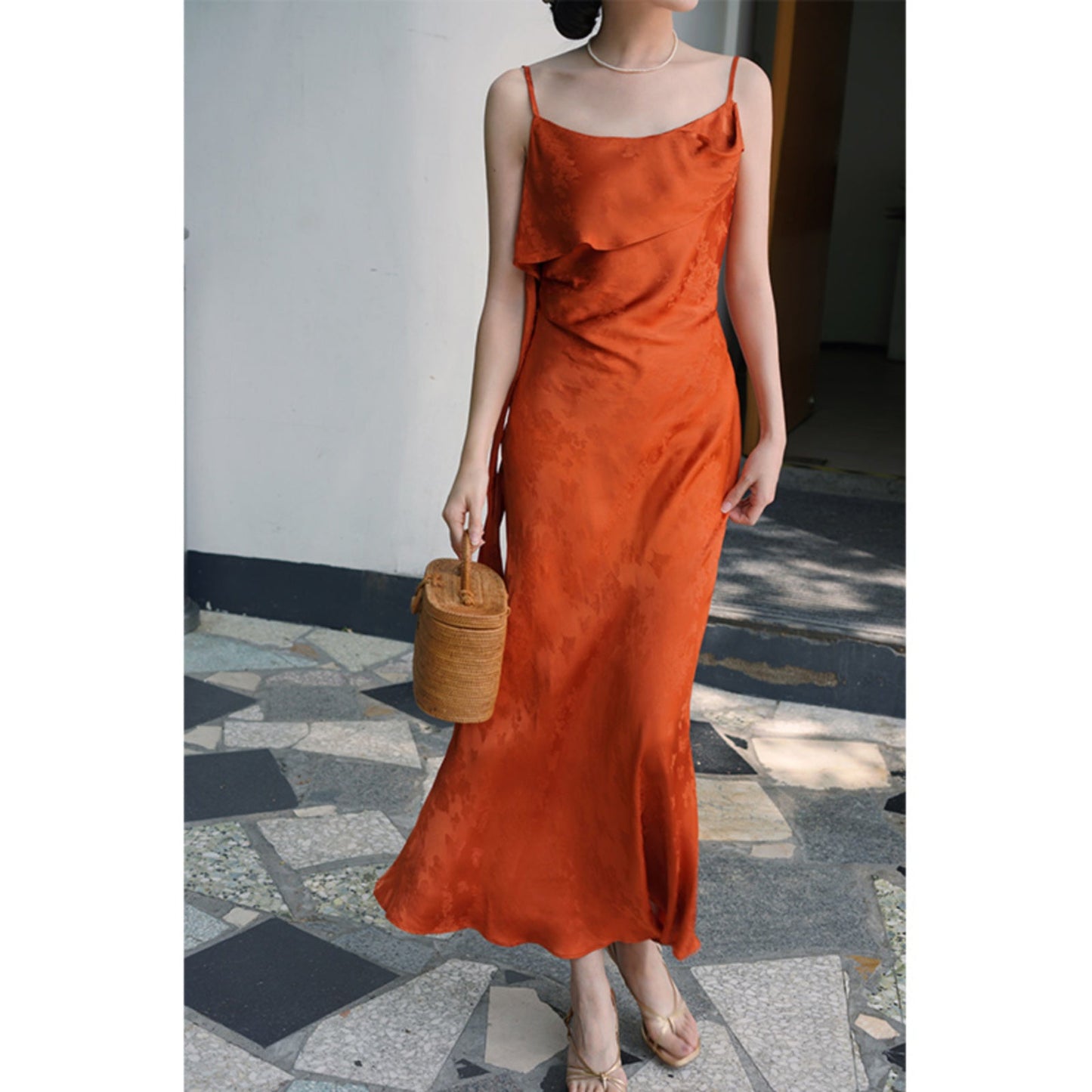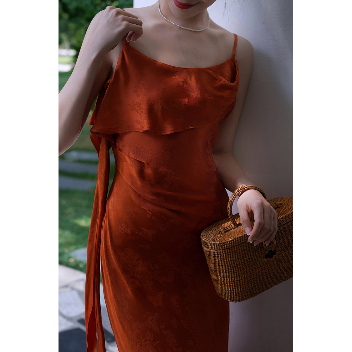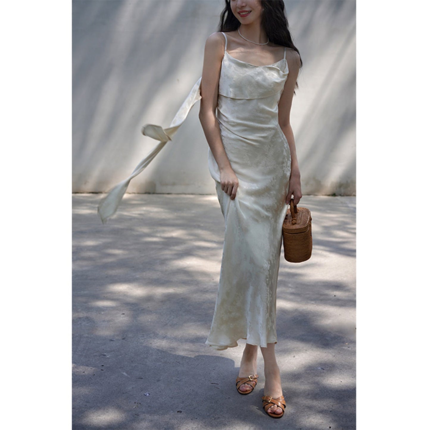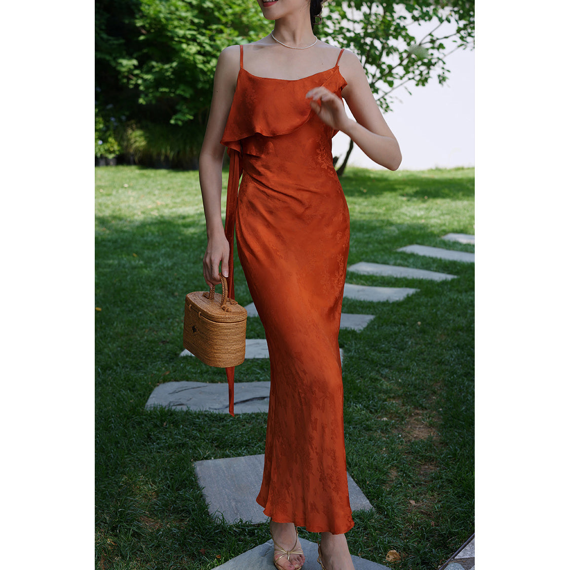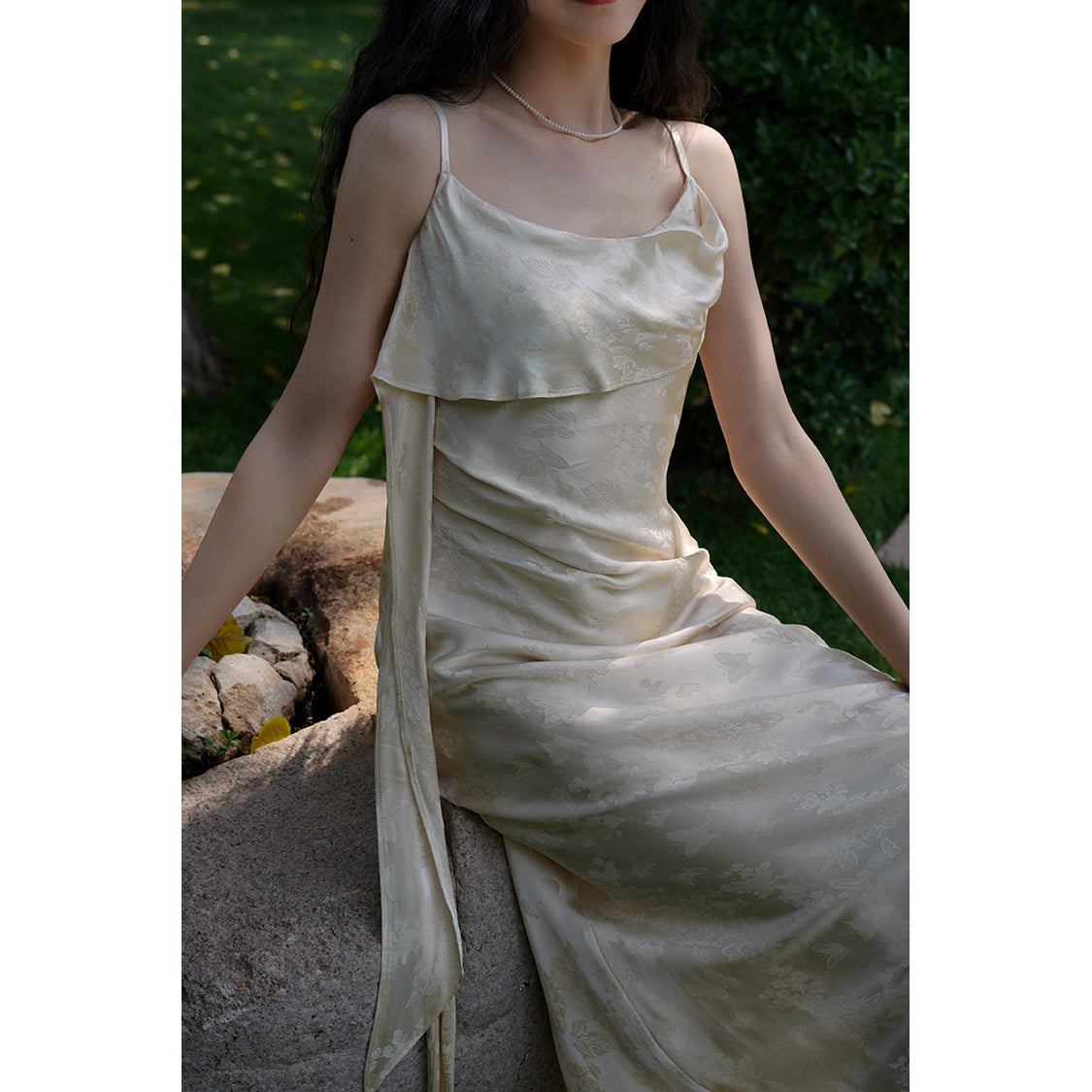 Flower and butterfly flower and bird painting satin jacquard dress