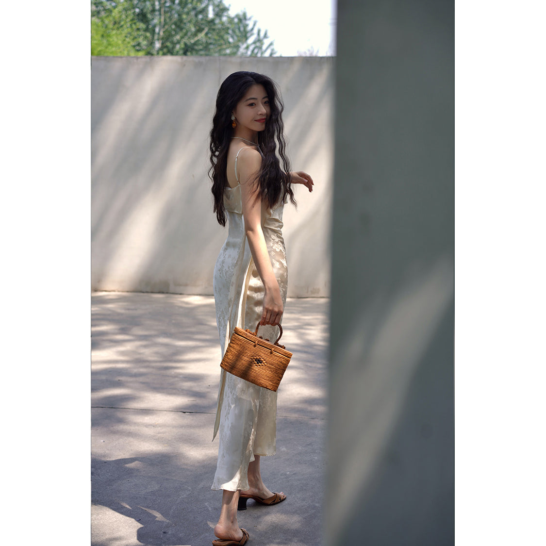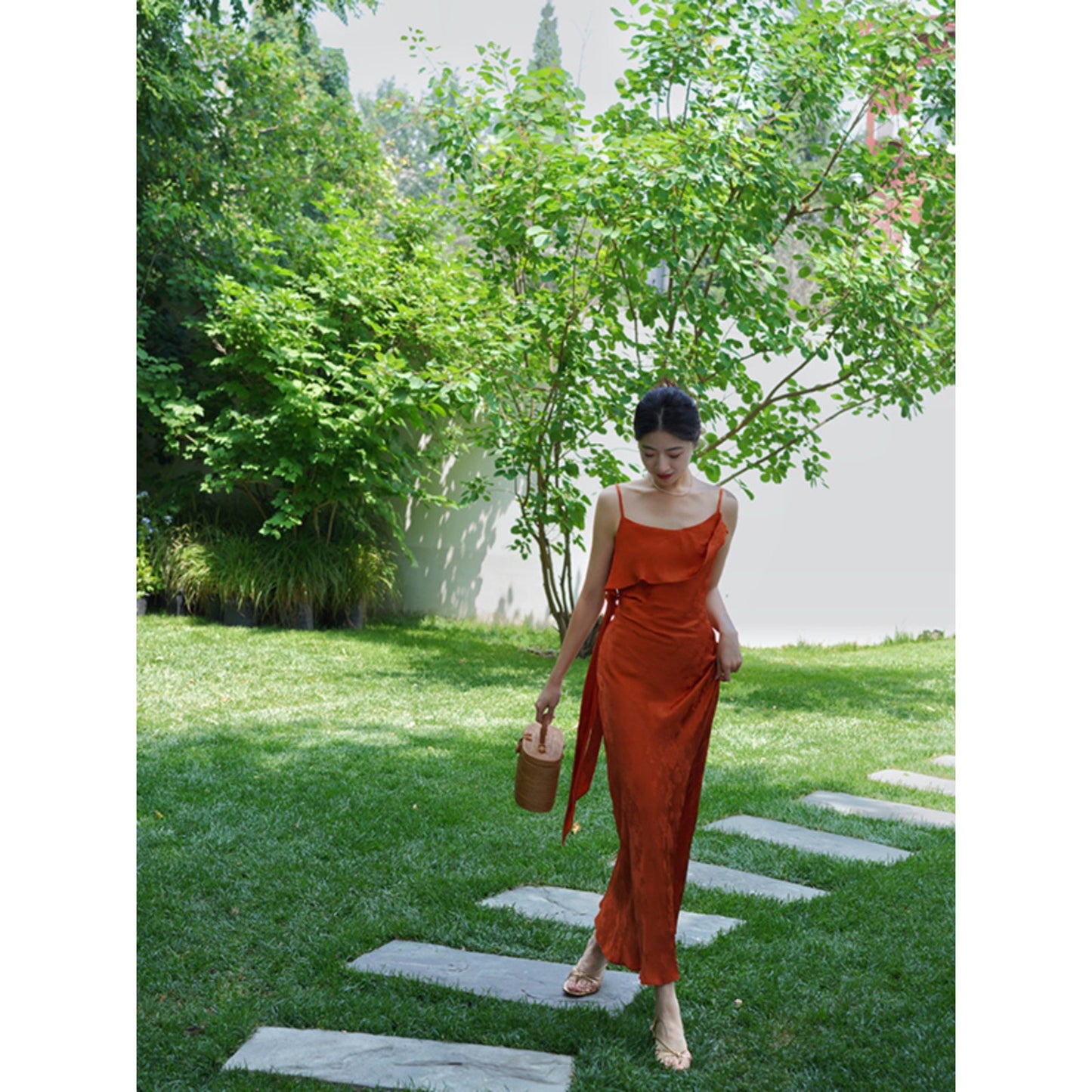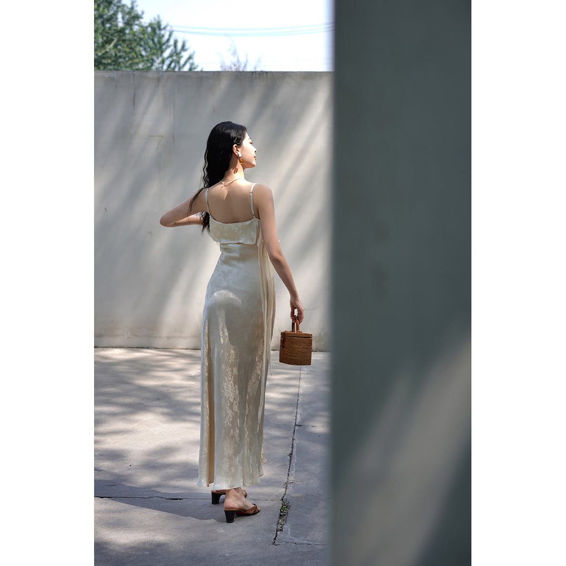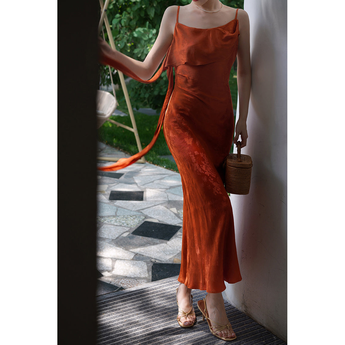 Flower and butterfly flower and bird painting satin jacquard dress