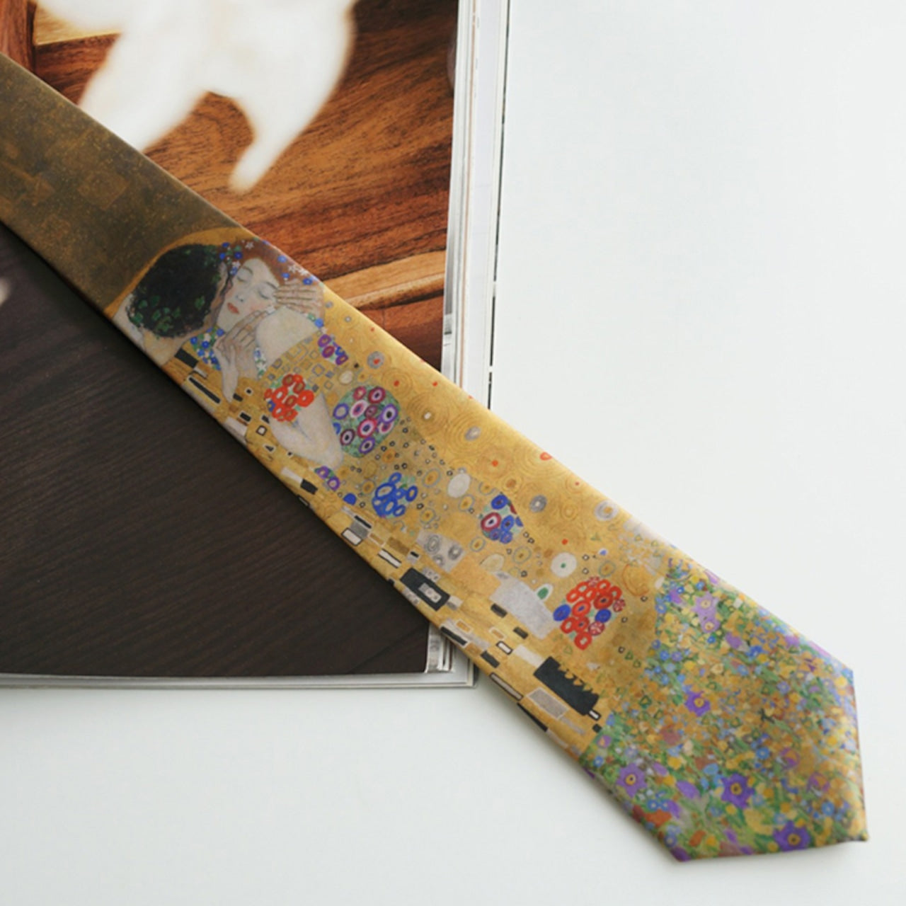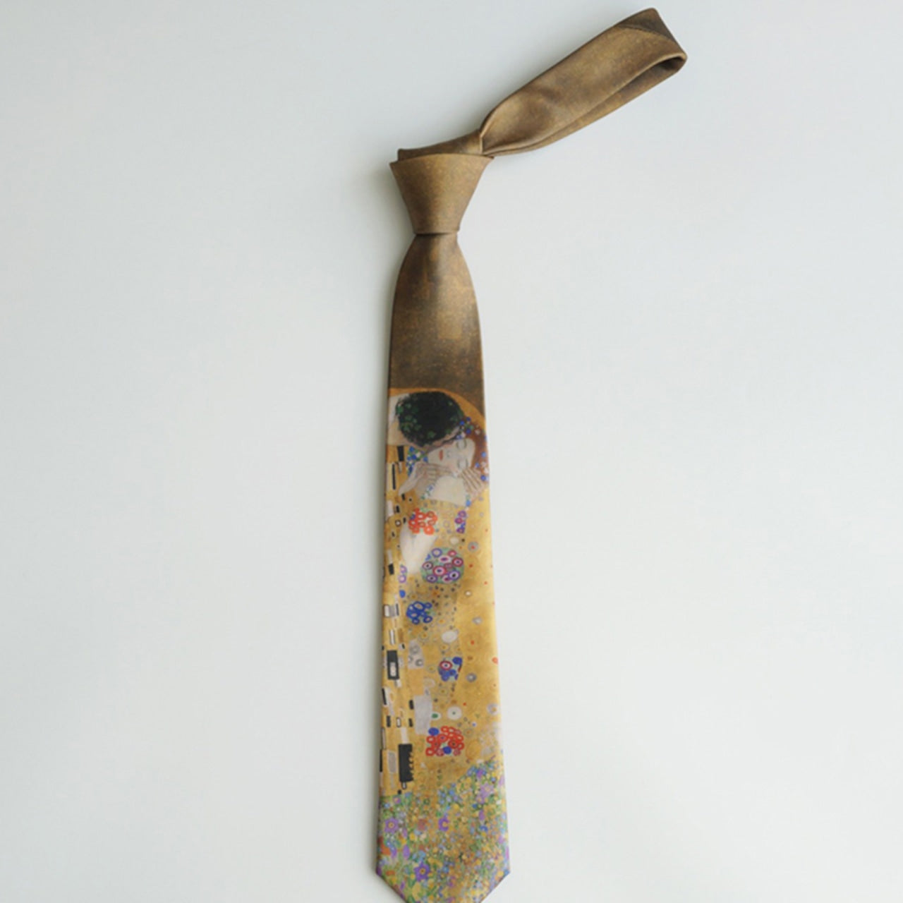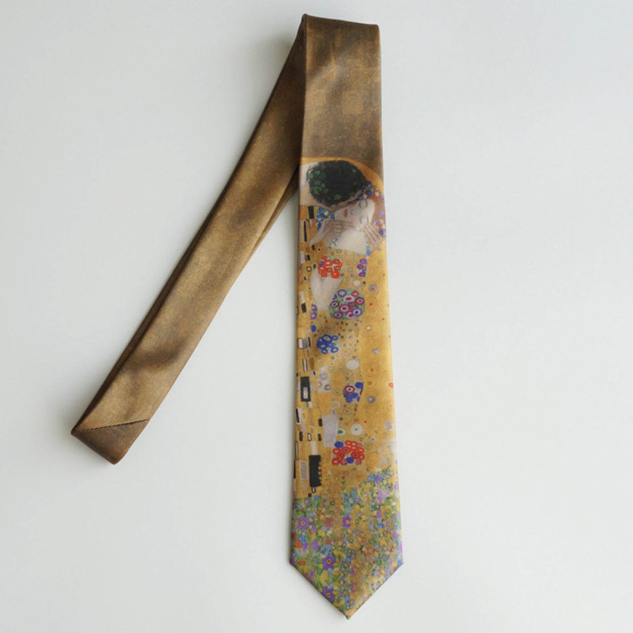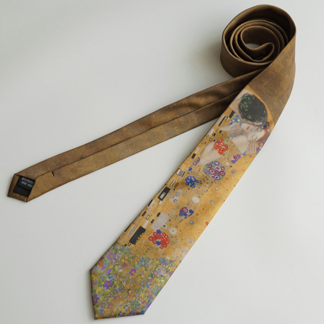 A necktie depicting Gustav Klimt's ``The Kiss.''