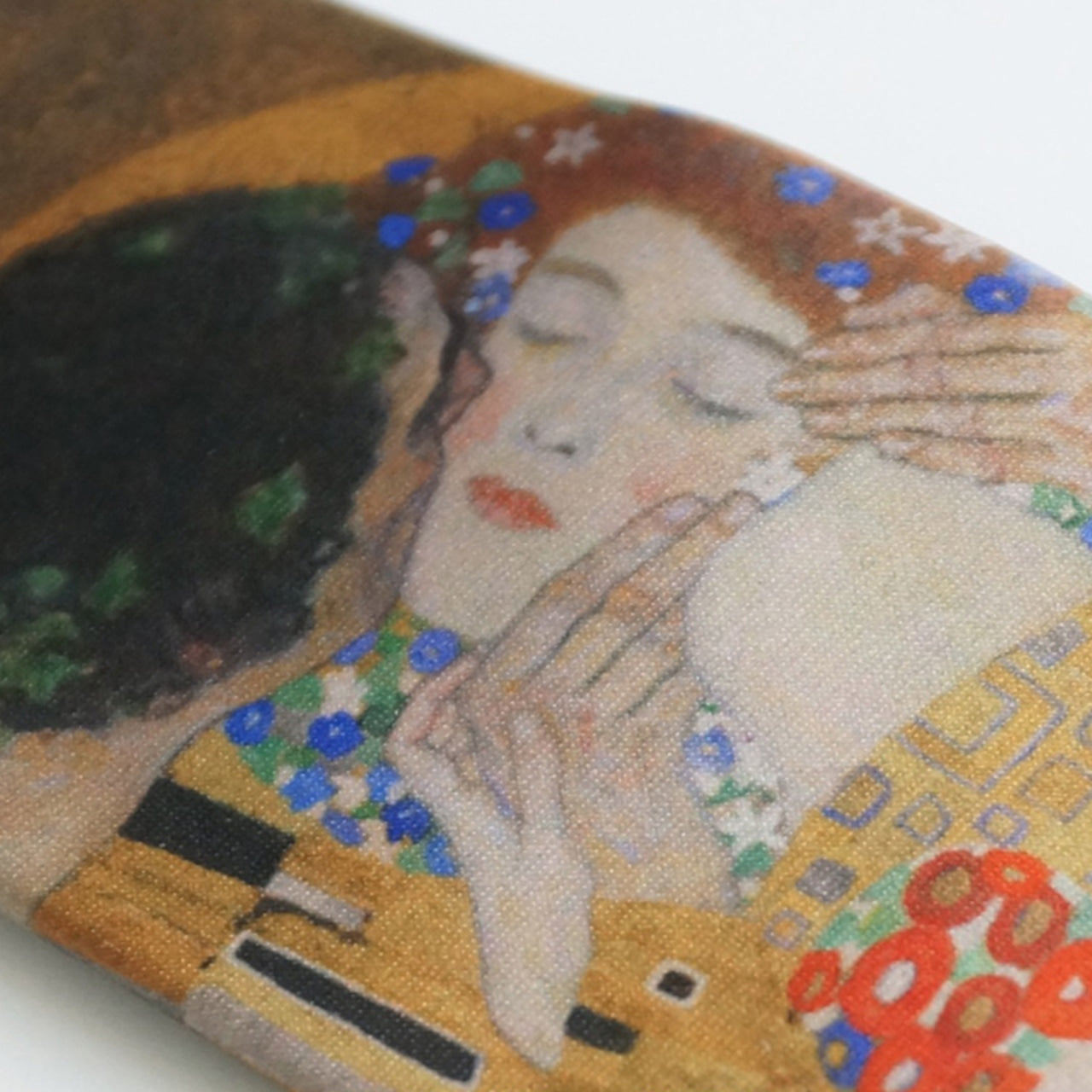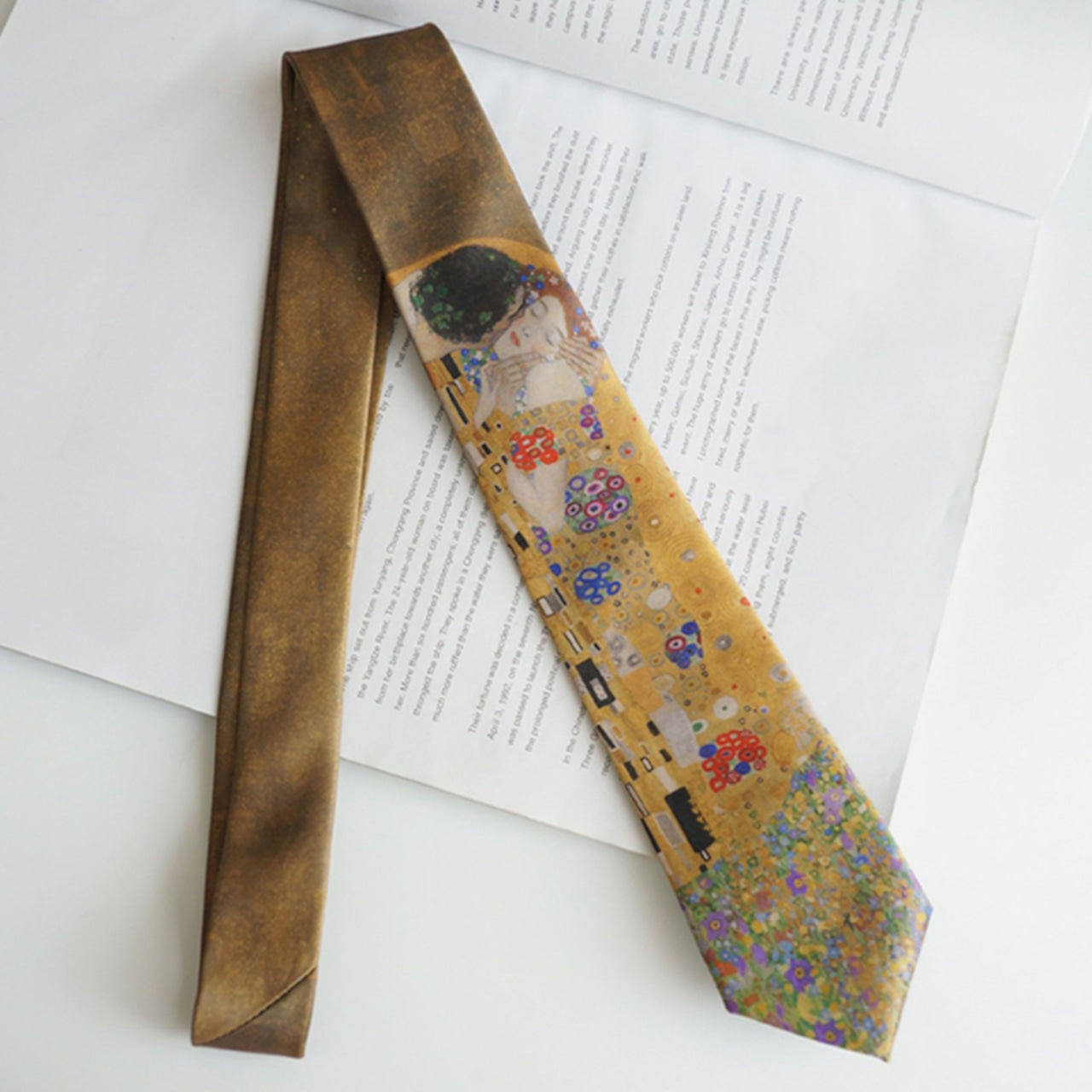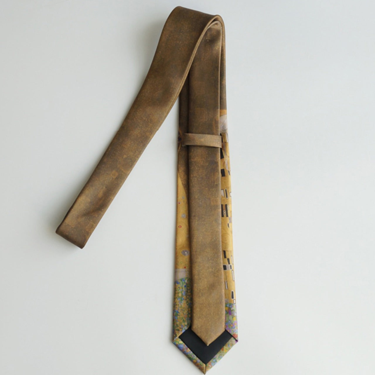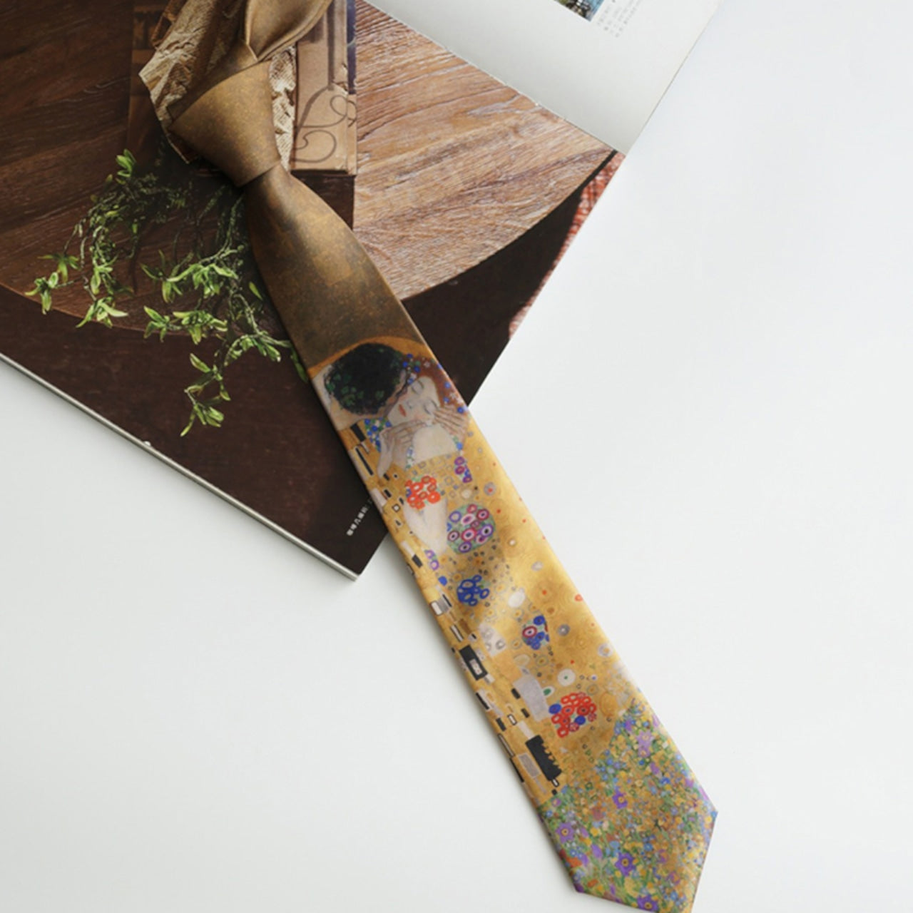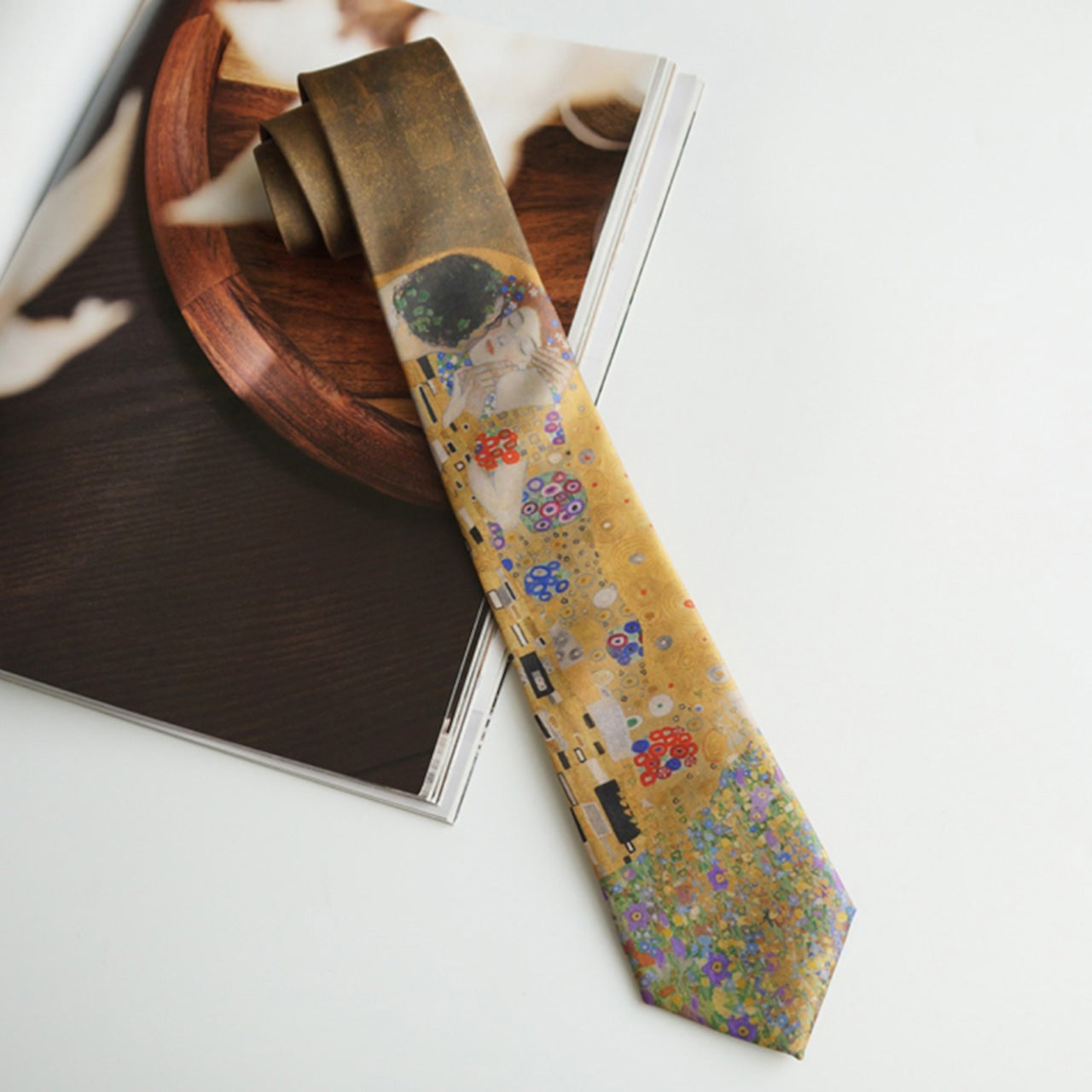 A necktie depicting Gustav Klimt's ``The Kiss.''