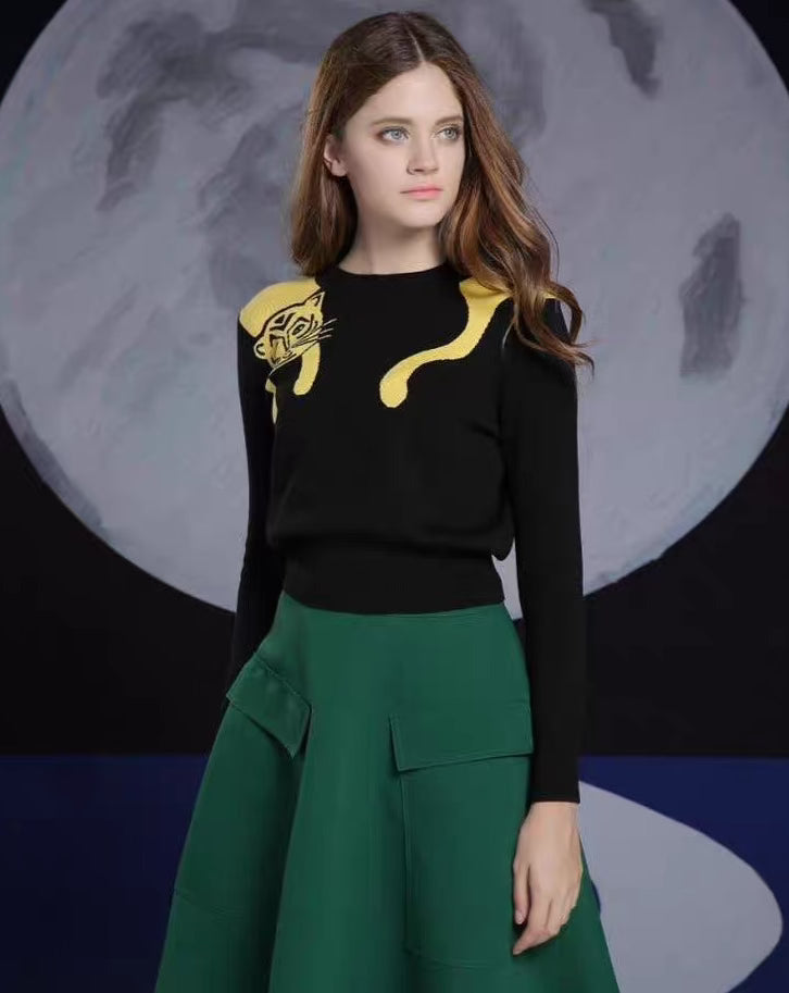 round neck long sleeved tiger sweater